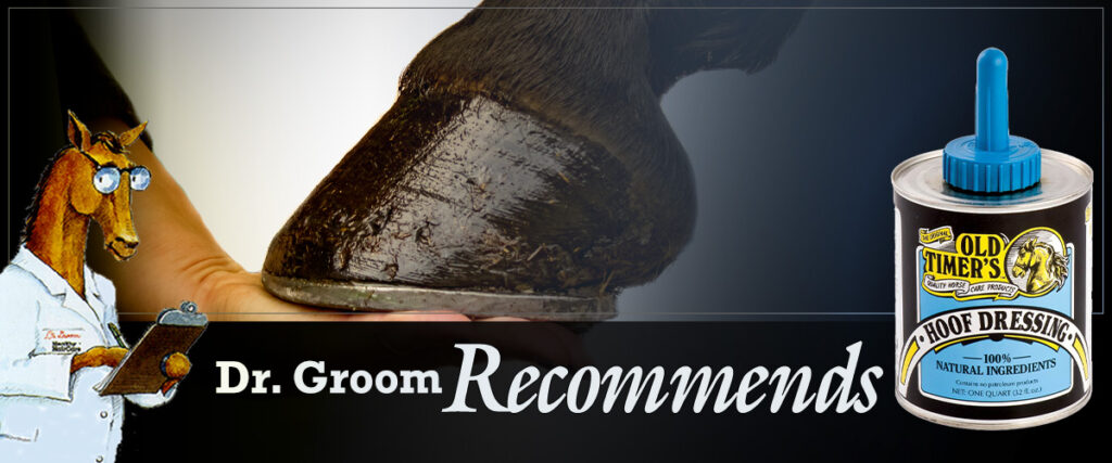 Another Doc Groom favorite is Old Timer’s Hoof Dressing, a century-old formulation developed by the Pennsylvania Amish that includes pine tar and flax seed oil which readily absorbs into the hoof wall to protect the hoof from drying and cracking. A great solution for hardworking hooves.