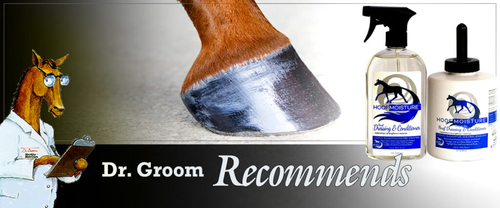 Doc Groom recommends Healthy HairCare’s Hoof Moisturizer.  This non-staining, clear, hoof conditioner includes both eucalyptus and lanolin, it utilizes a unique delivery system that works symbiotically with the hoof’s natural flow by allowing the normal expansion and contraction of the hoof to transfer moisture both in and out.