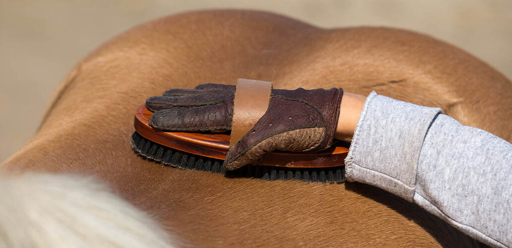 During late summer and early fall, horses begin to shed their short summer coat to make way for a dense winter layer. Regular grooming is essential during this time to help loosen dead hair and stimulate healthy new growth. A rubber curry comb or grooming glove works wonders for lifting old hair and dirt while promoting circulation to the skin. Follow with a stiff brush to sweep away loosened hair and dander.
